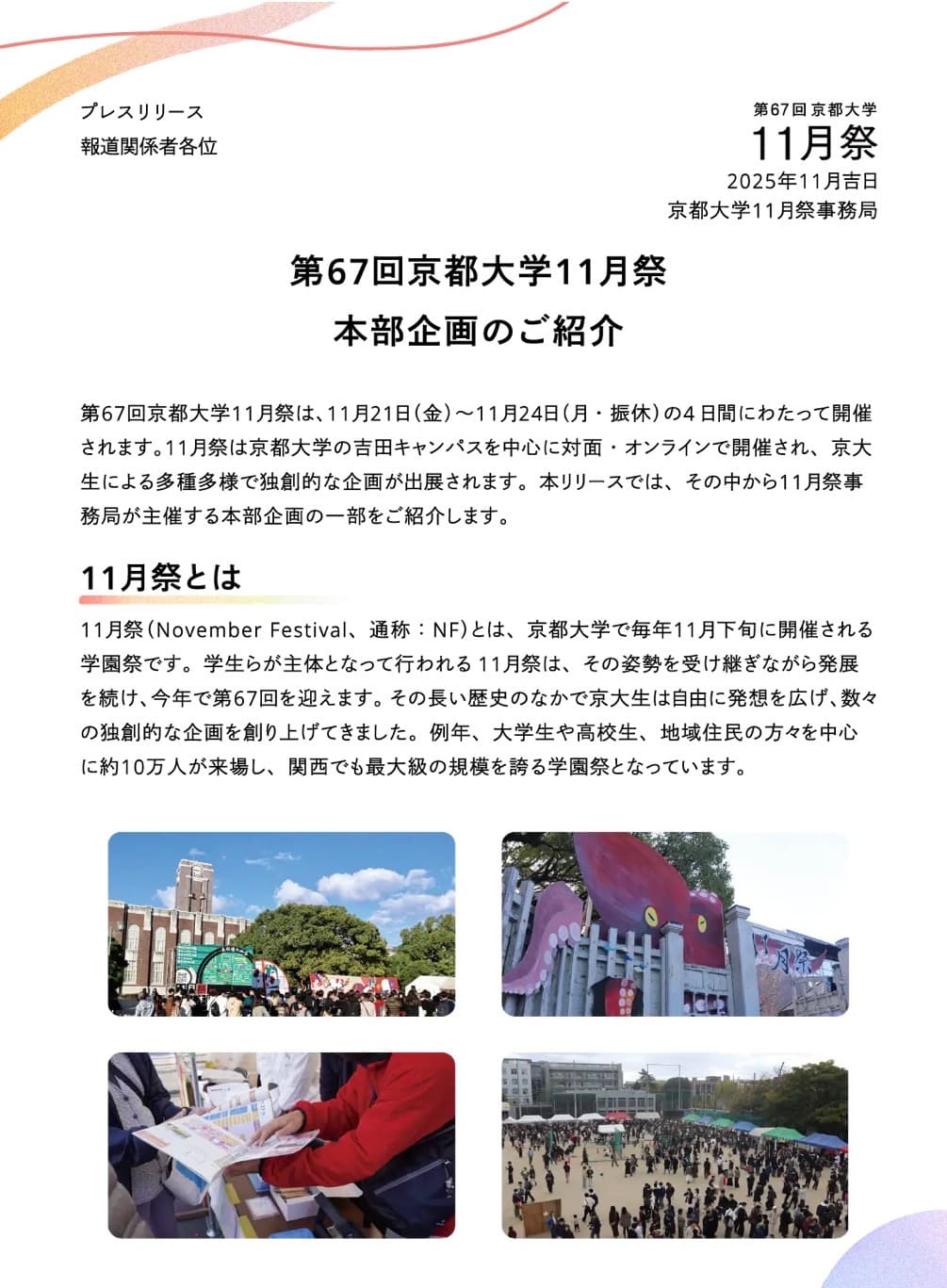 報道各社にプレスリリースを送り、11月祭の魅力を発信します。