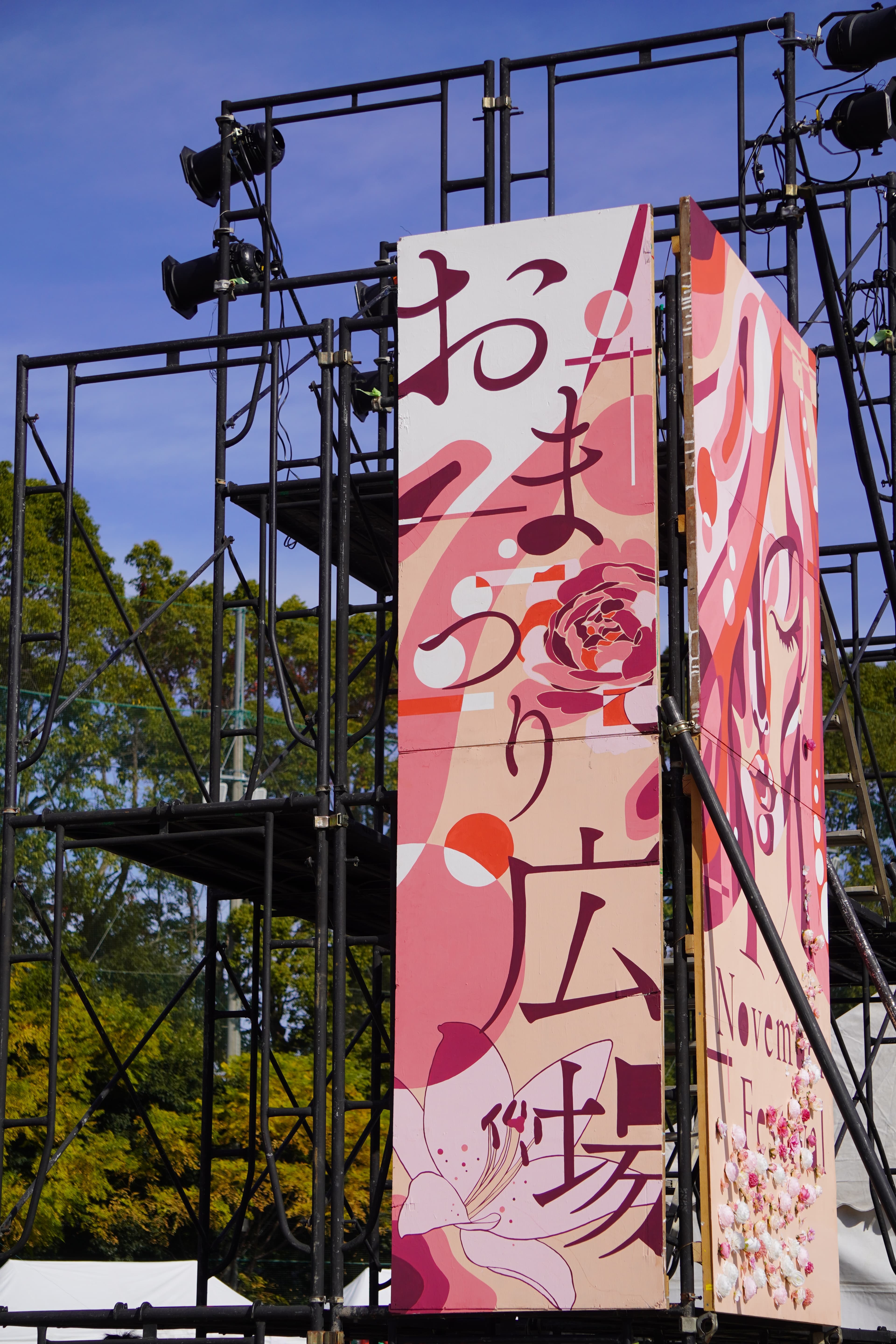 おまつり広場に設置するピンタワー吊り看板の制作に取り掛かります。